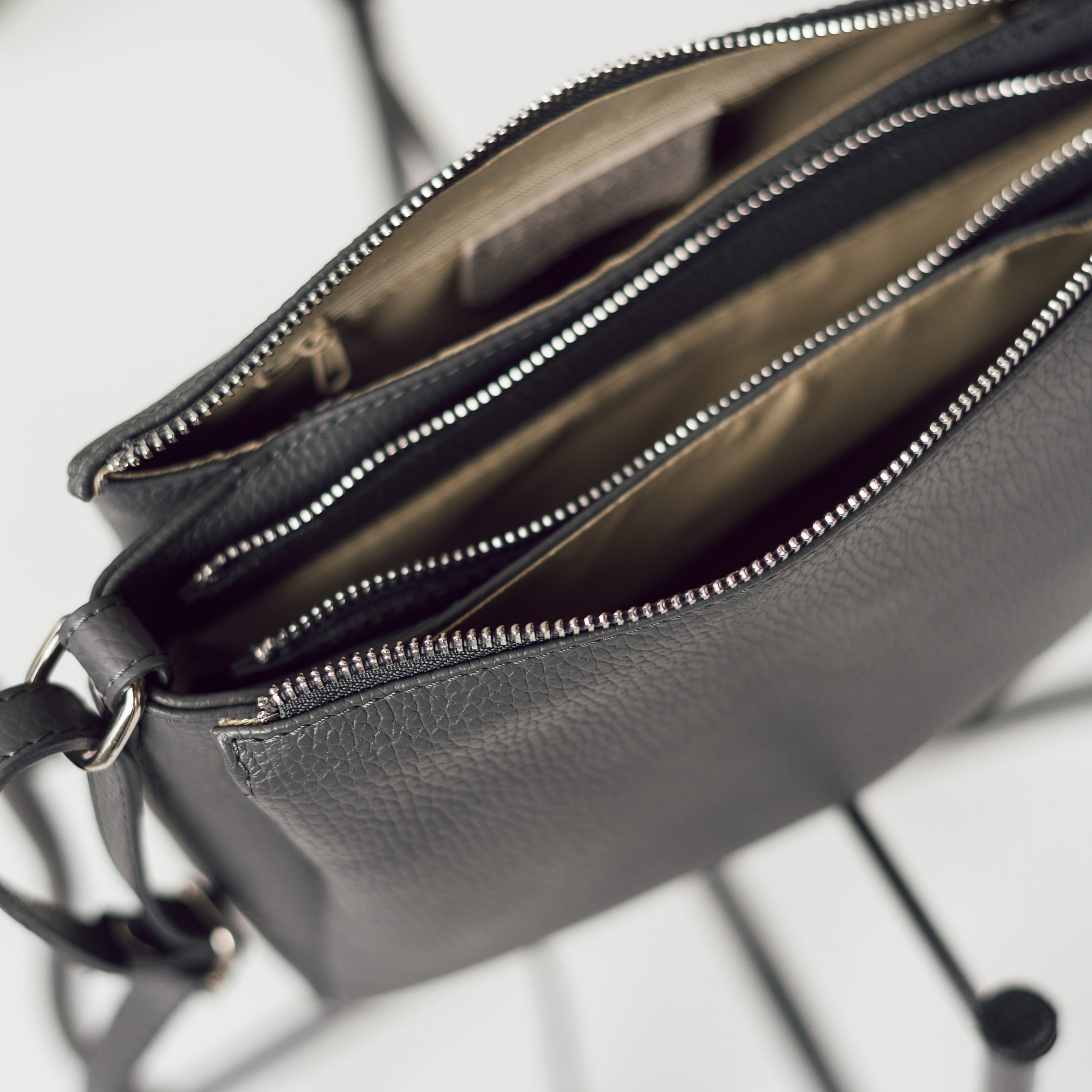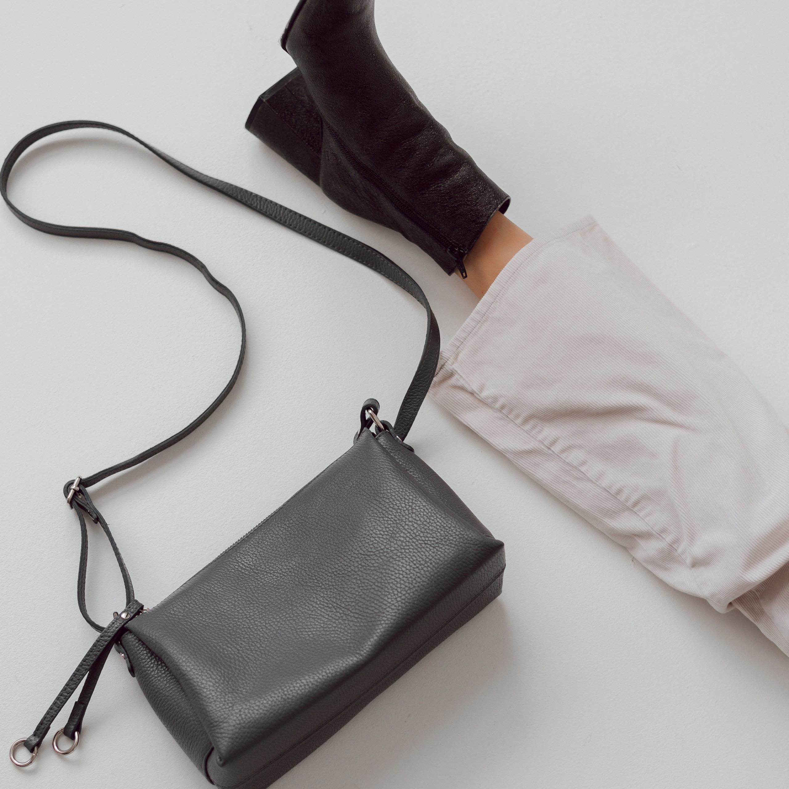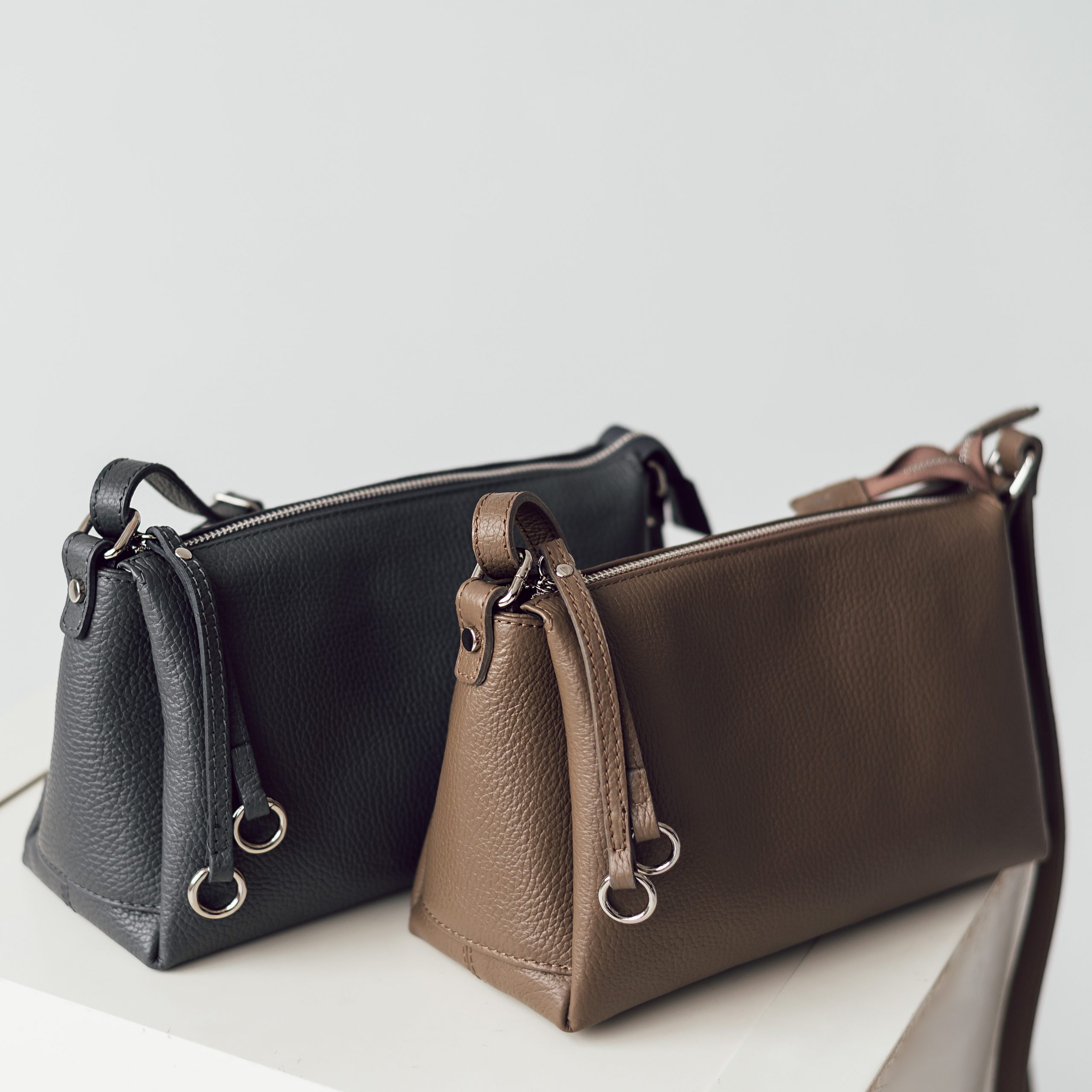 Сумка выполнена из натуральной кожи. Сверху застегивается на молнию. Внутри ссумка разделена на три отделения, одно из которых посередине, на молнии. Длинный ремешок регулируется по длине. С обратной стороны сумки есть наружный карман на молнии. Ещё больше новинок в наших магазинах в Минске.