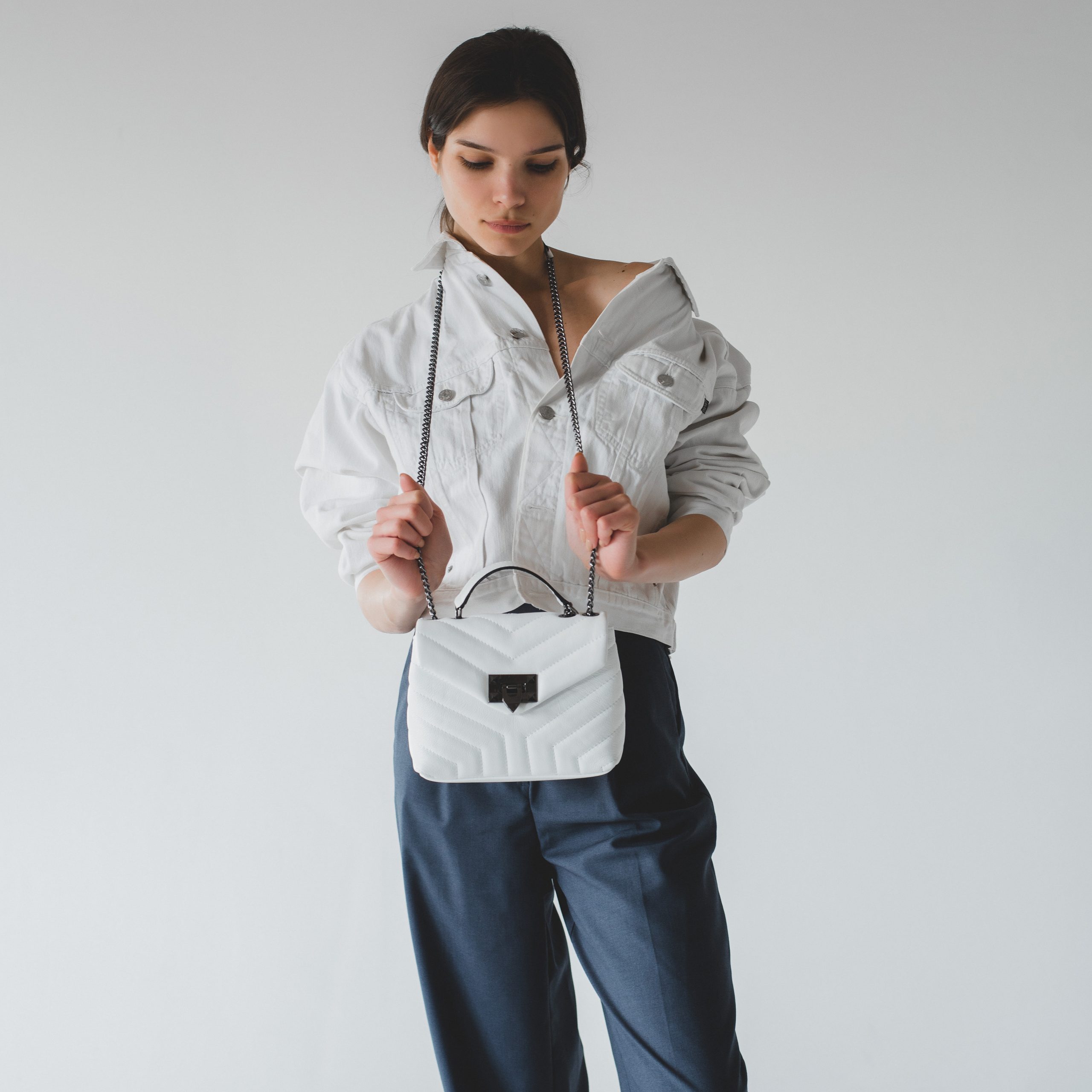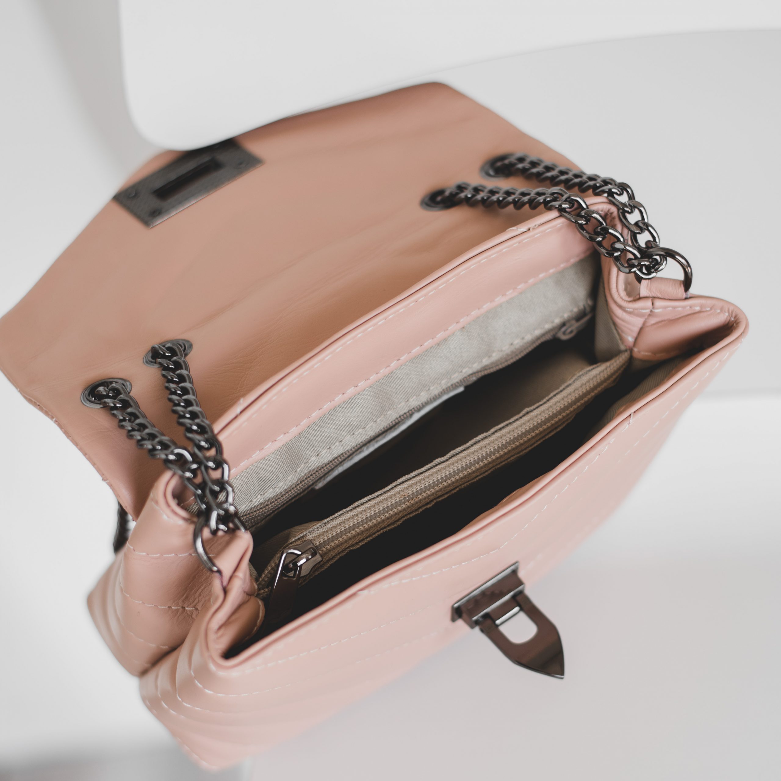 Сумка выполнена из натуральной кожи. Клапан застегивается на механическую застежку. Внутри сумка разделена на два отделения. Также есть боковой карман на молнии. Длинный ремешок — цепочка регулируется по длине. Ещё больше новинок в наших магазинах в Минске.