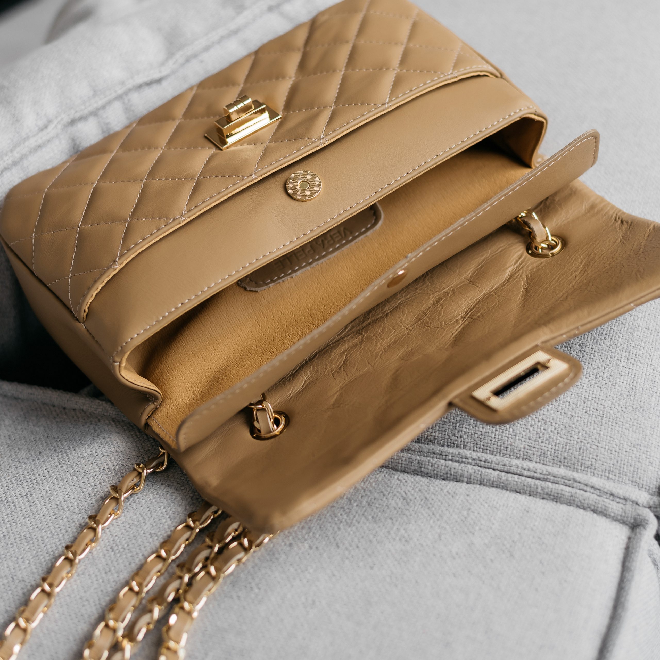 Сумка выполнена из натуральной кожи. Клапан застегивается на кнопку-магнит. Внутри сумка разделена на три отделения, среднее отделение застегивается на кнопку-магнит. Внутри есть боковой карман на молнии. Длинный ремешок-цепочка регулируется по длине. Ещё больше сумок в наших магазинах в Минске и Гродно.