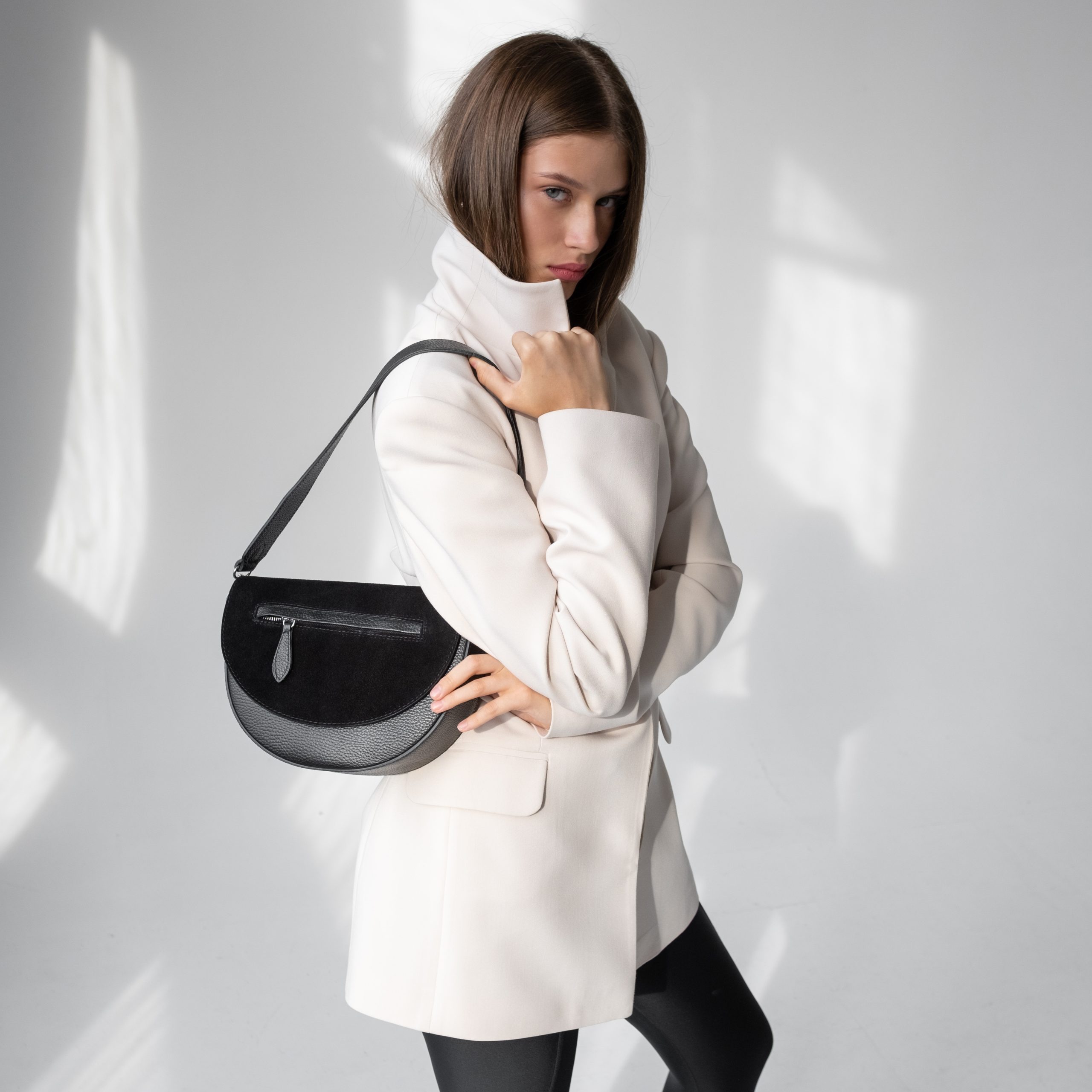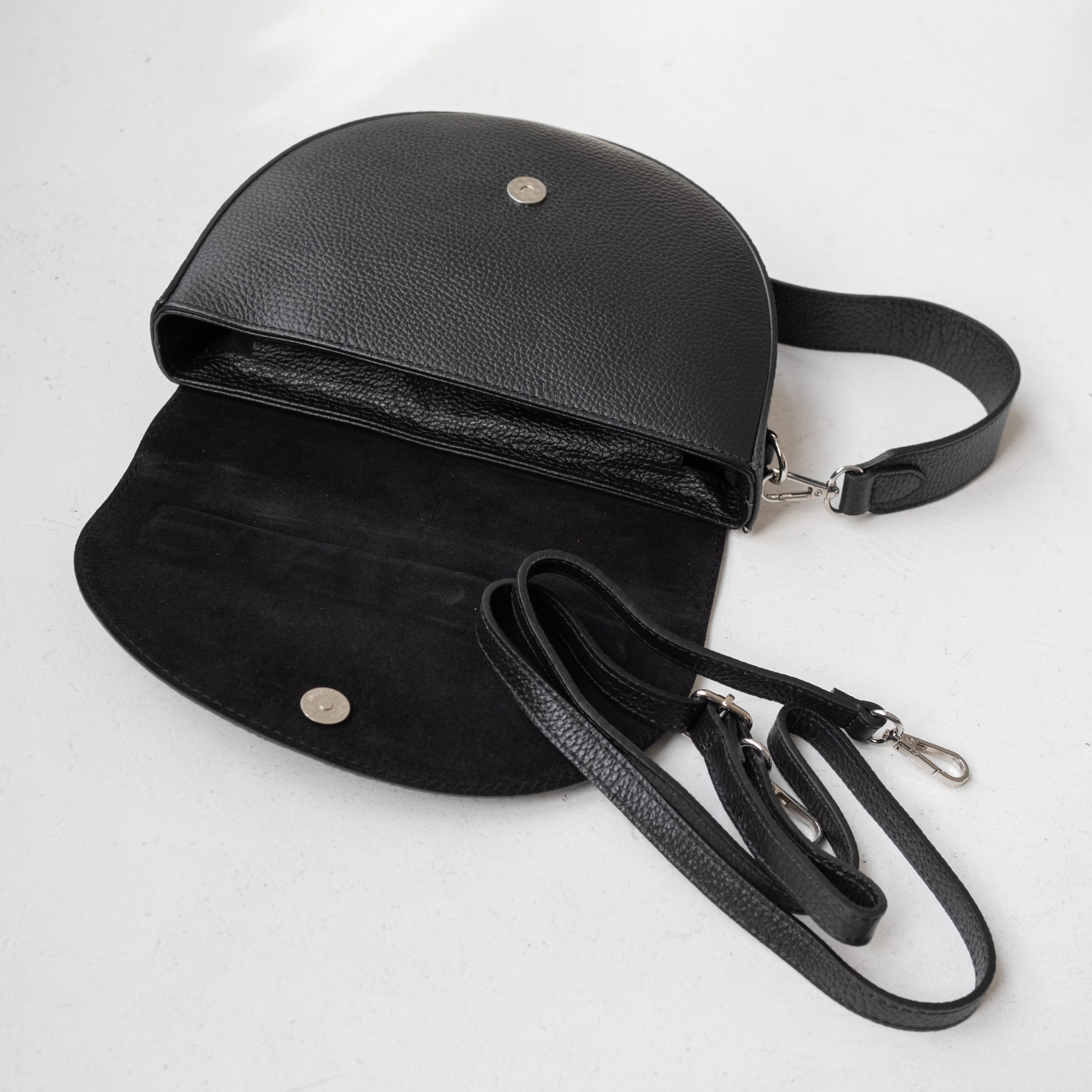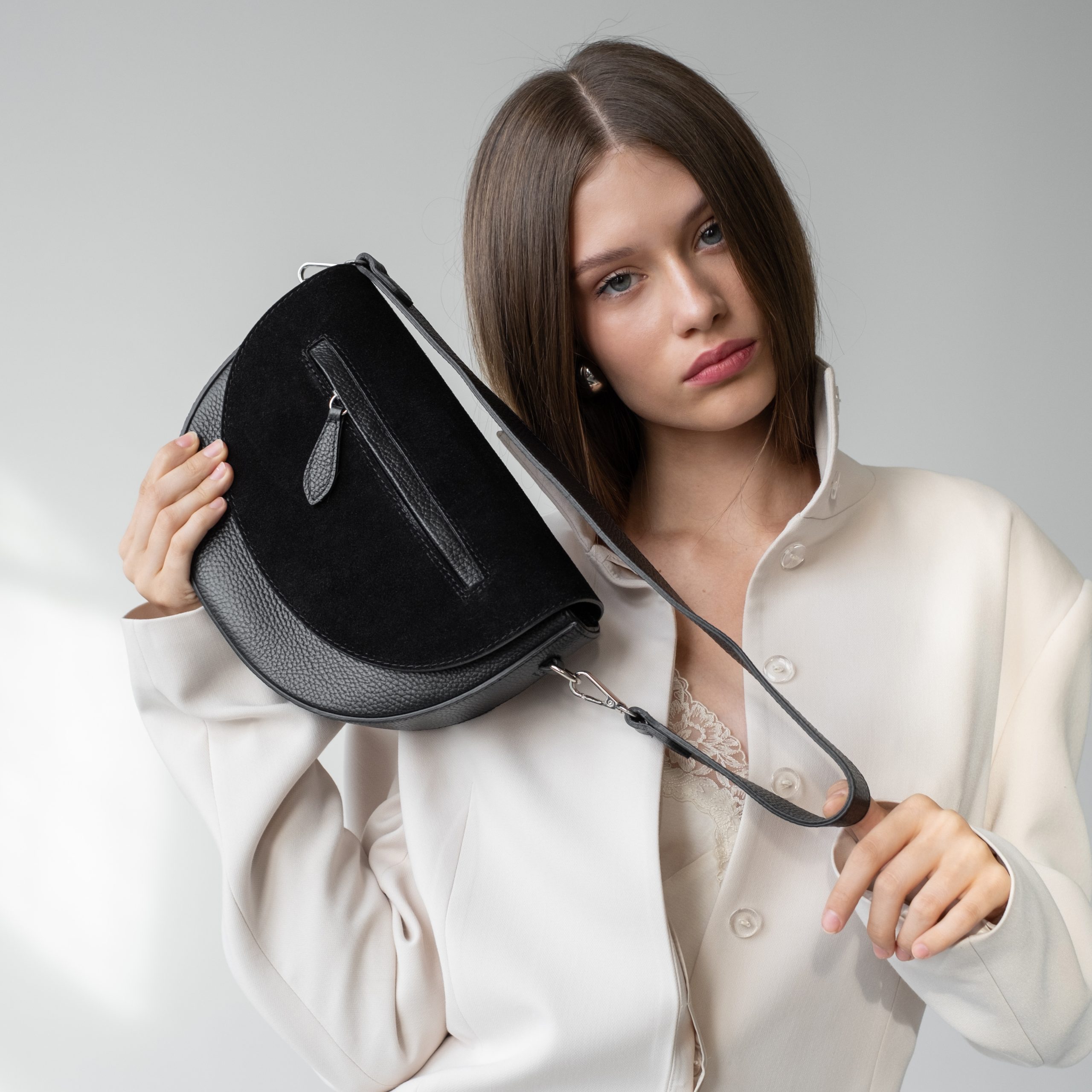 Сумка выполнена из натуральной кожи. Клапан выполнен из натуральной замши и застёгивается на кнопку-магнит. Под клапаном сумка застёгивается на молнию. Внутри одно общее отделение и боковой карман на молнии. Длинный ремешок регулируется по длине. С лицевой стороны сумки на клапане наружный карман на молнии. Ещё больше новинок в наших магазинах в Минске и в Гродно.