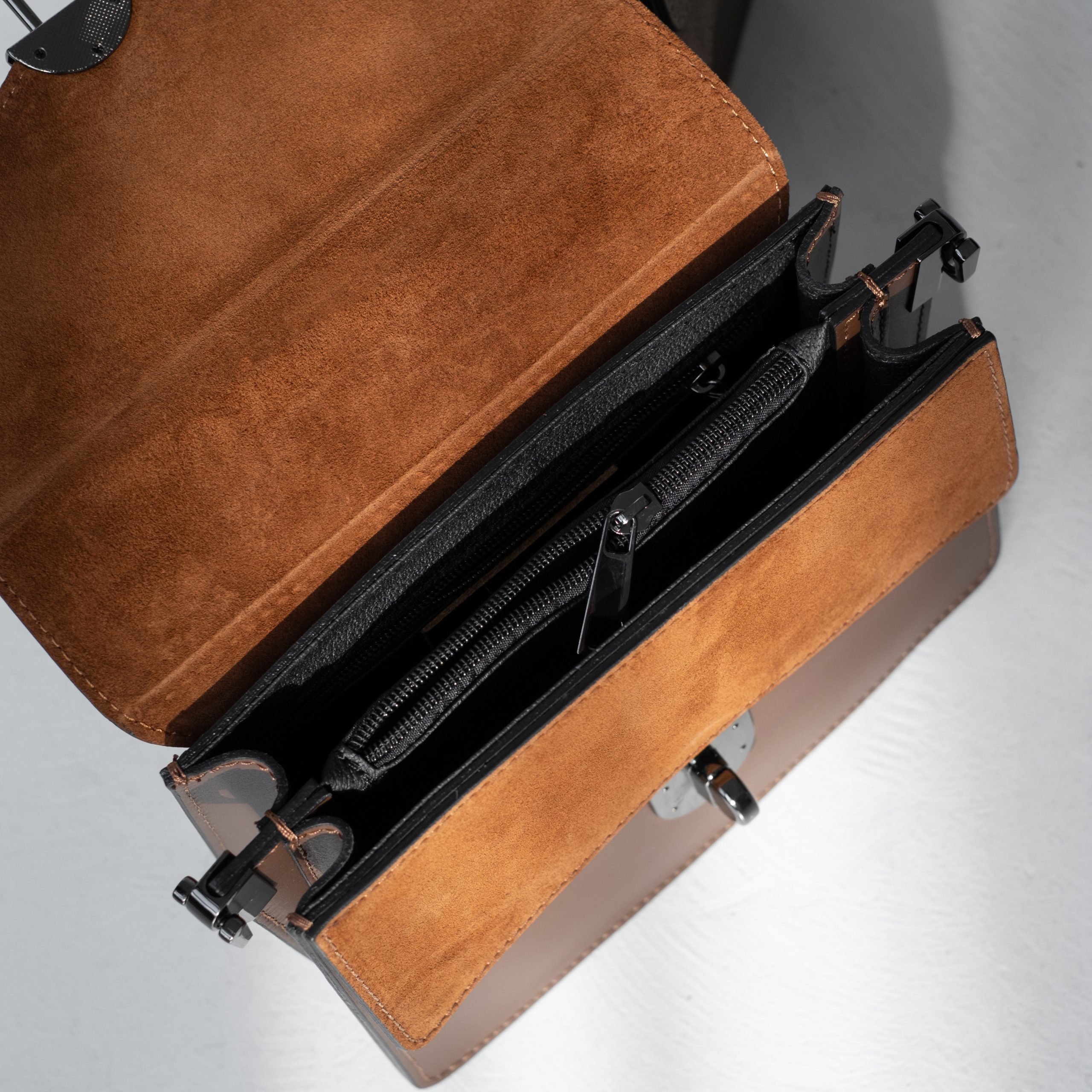 Сумка выполнена из натуральной кожи. Клапан  выполнен из натуральной замши и застёгивается на механическую застёжку Внутри посередине отделение на молнии и боковой карман на молнии. Длинный ремешок регулируется по длине. Ещё больше новинок в наших магазинах в Минске и в Гродно.