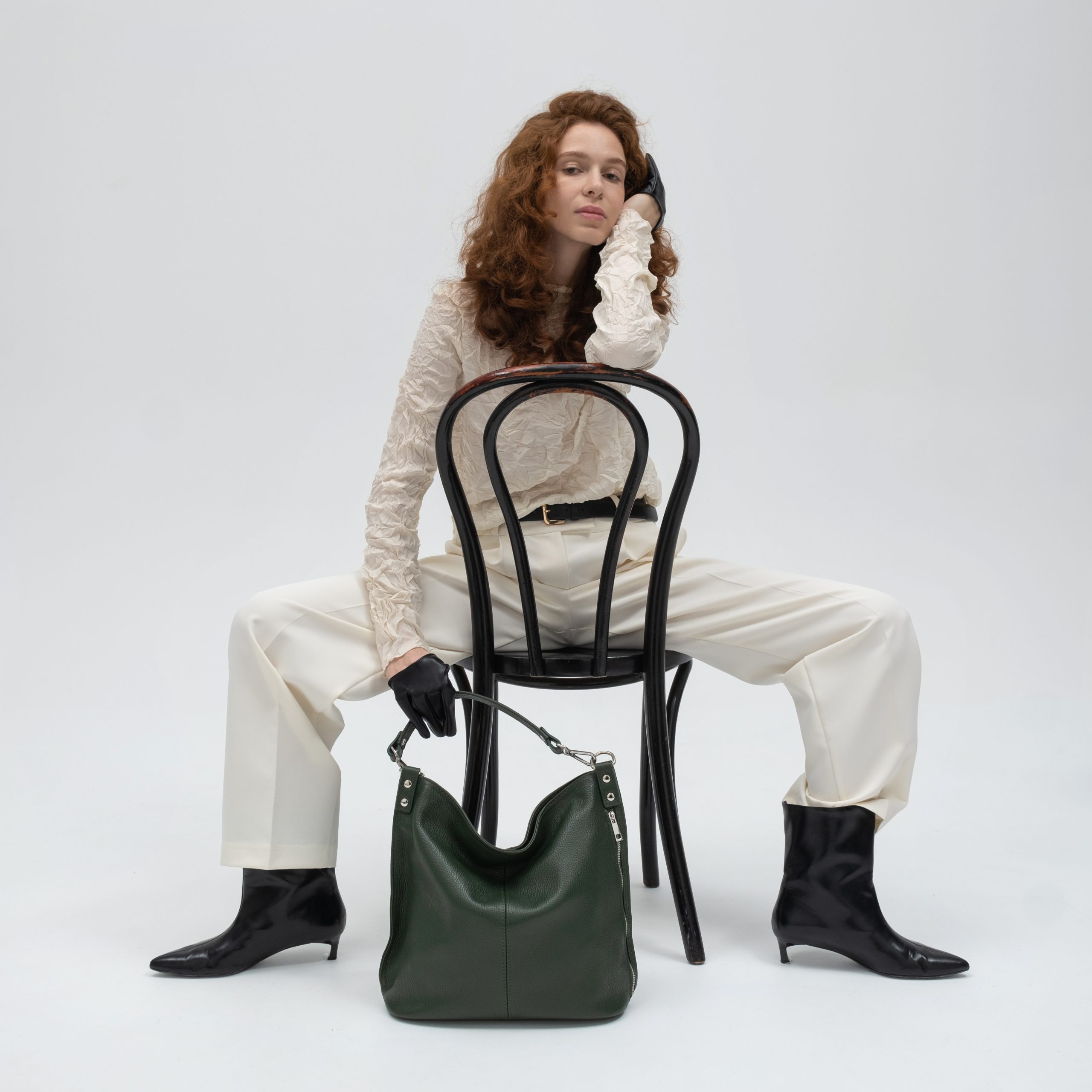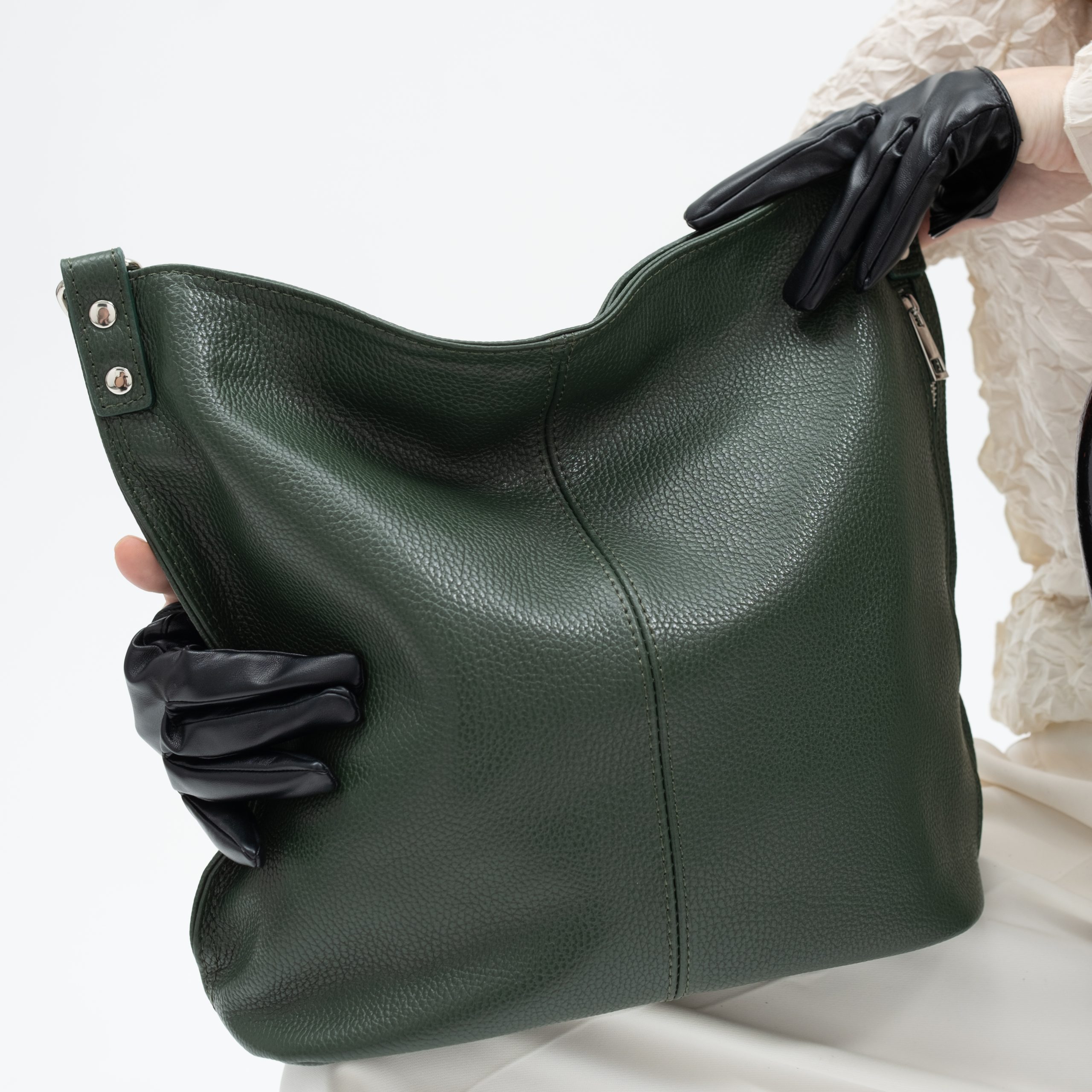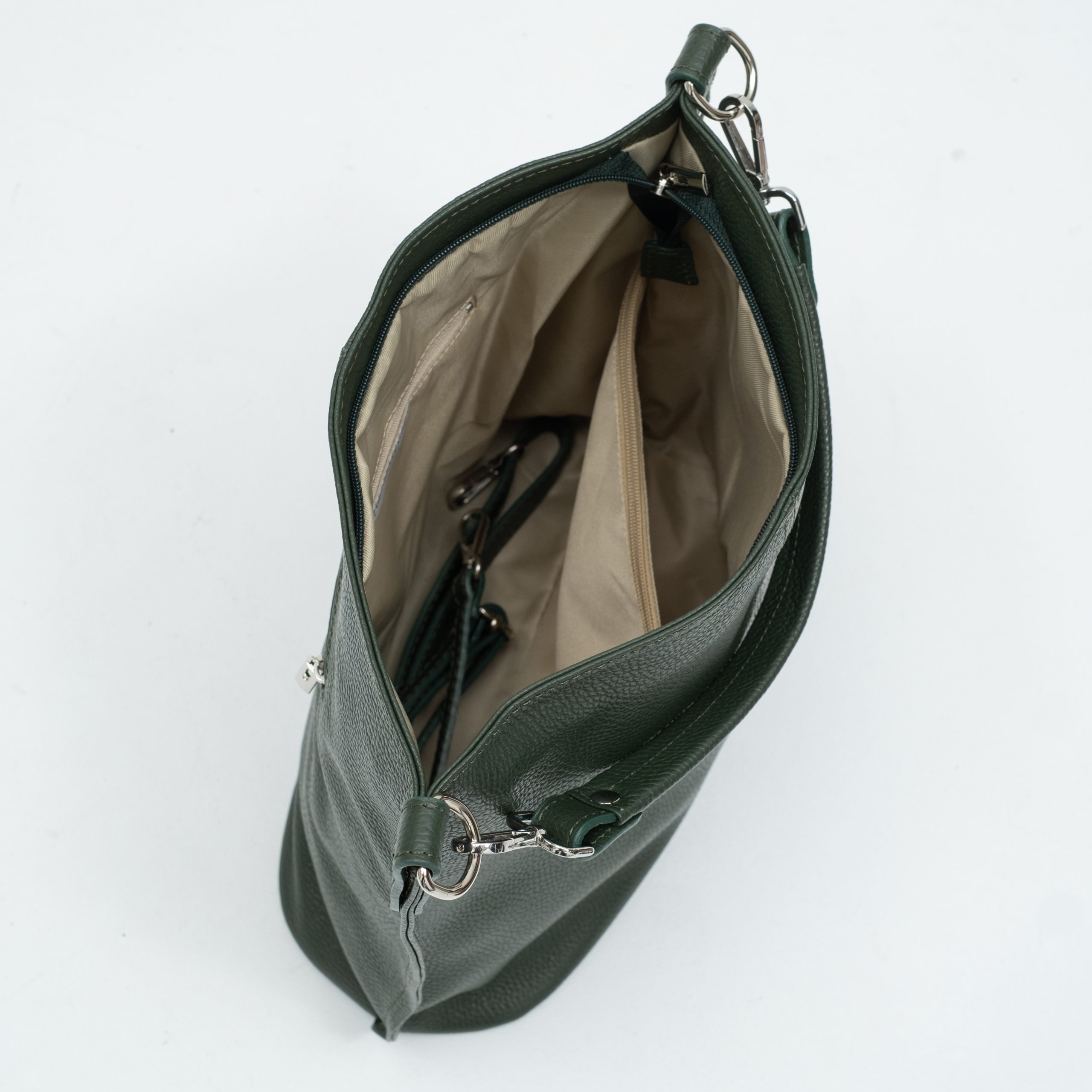 Сумка выполнена из натуральной кожи. Сверху застегивается на молнию. Одна короткая ручка и длинный ремешок, регулирующийся по длине. Внутри посередине отделение на молнии и три боковых кармана, два открытых и один на молнии. Так же есть два наружных кармана на молнии. Один с лицевой стороны сумки, другой с обратной. Ещё больше новинок в наших магазинах в Минске и Гродно.