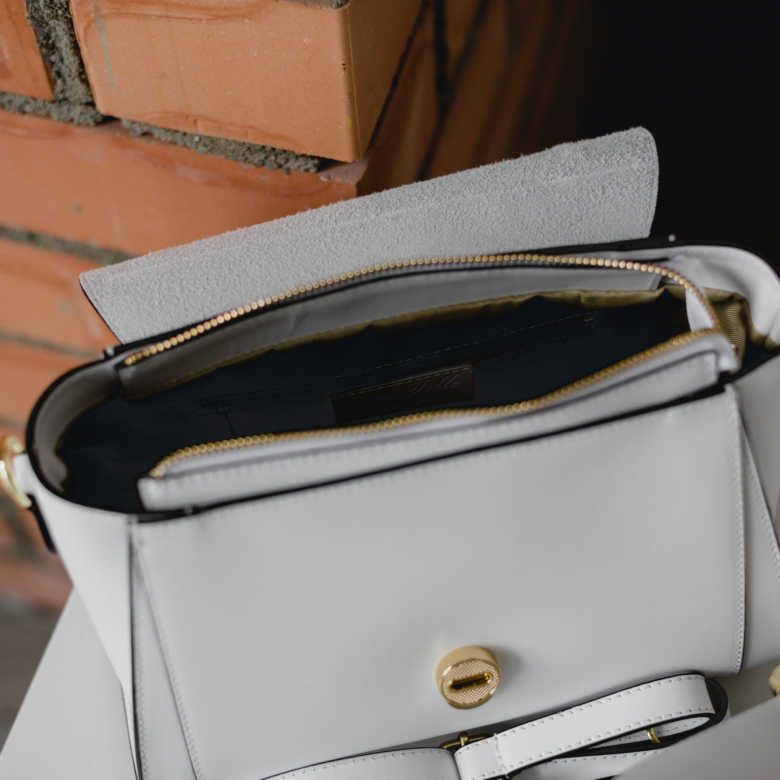 Сумка выполнена из натуральной кожи. Клапан застегивается на автоматическую застежку. Под клапаном сумка застегивается на молнию. Внутри одно общее отделение три боковых кармана, два открытых и один на молнии. Одна короткая ручка и длинный ремешок, регулирующийся по длине. Ещё больше новинок в наших магазинах в Минске.