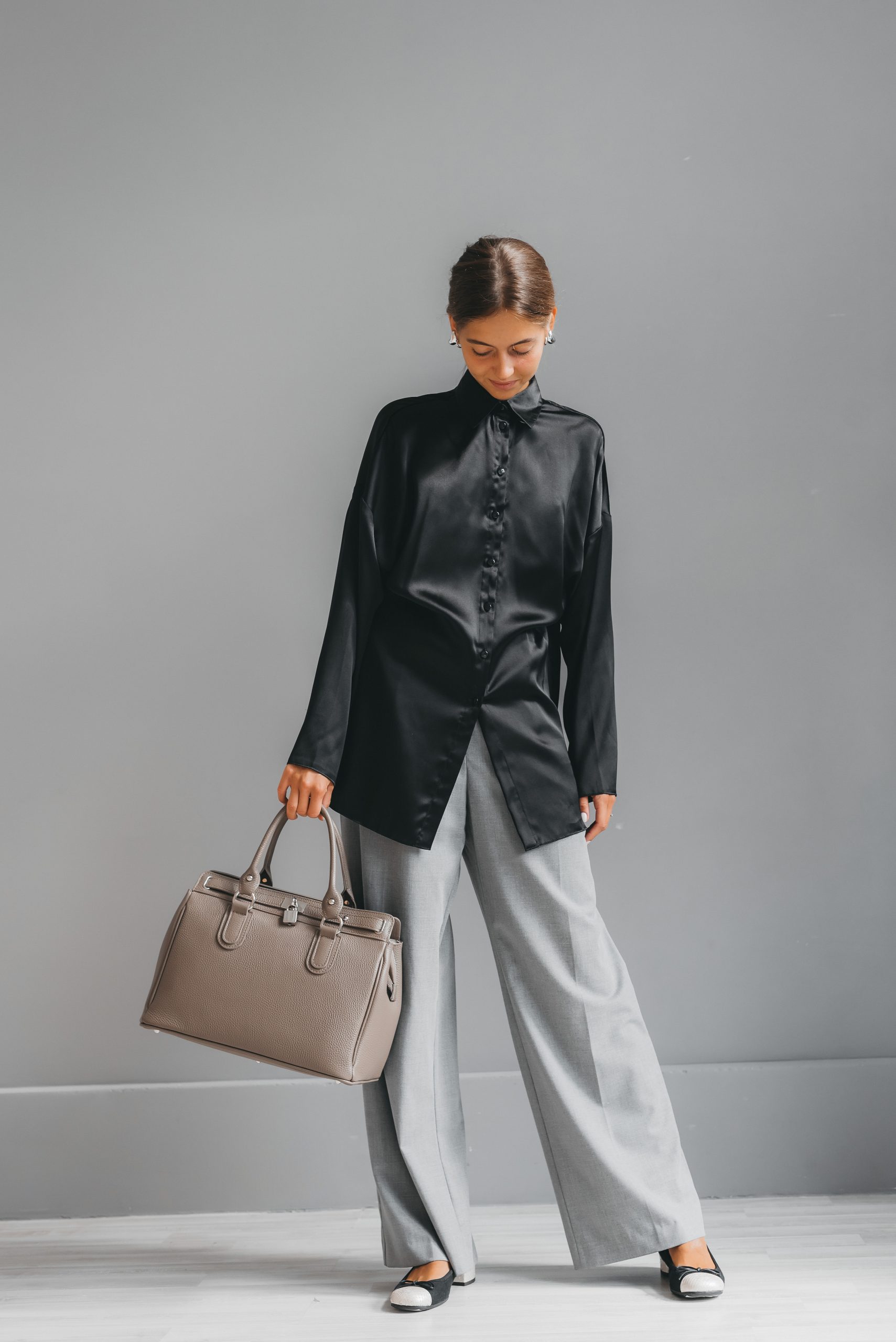 Сумка выполнена из натуральной кожи. Сверху застегивается на молнию. Две короткие ручки и длинный ремешок, регулирующийся по длине. Внутри посередине отделение на молнии и три боковых кармана, два открытых и один на молнии. Ещё больше новинок в наших магазинах в Минске.