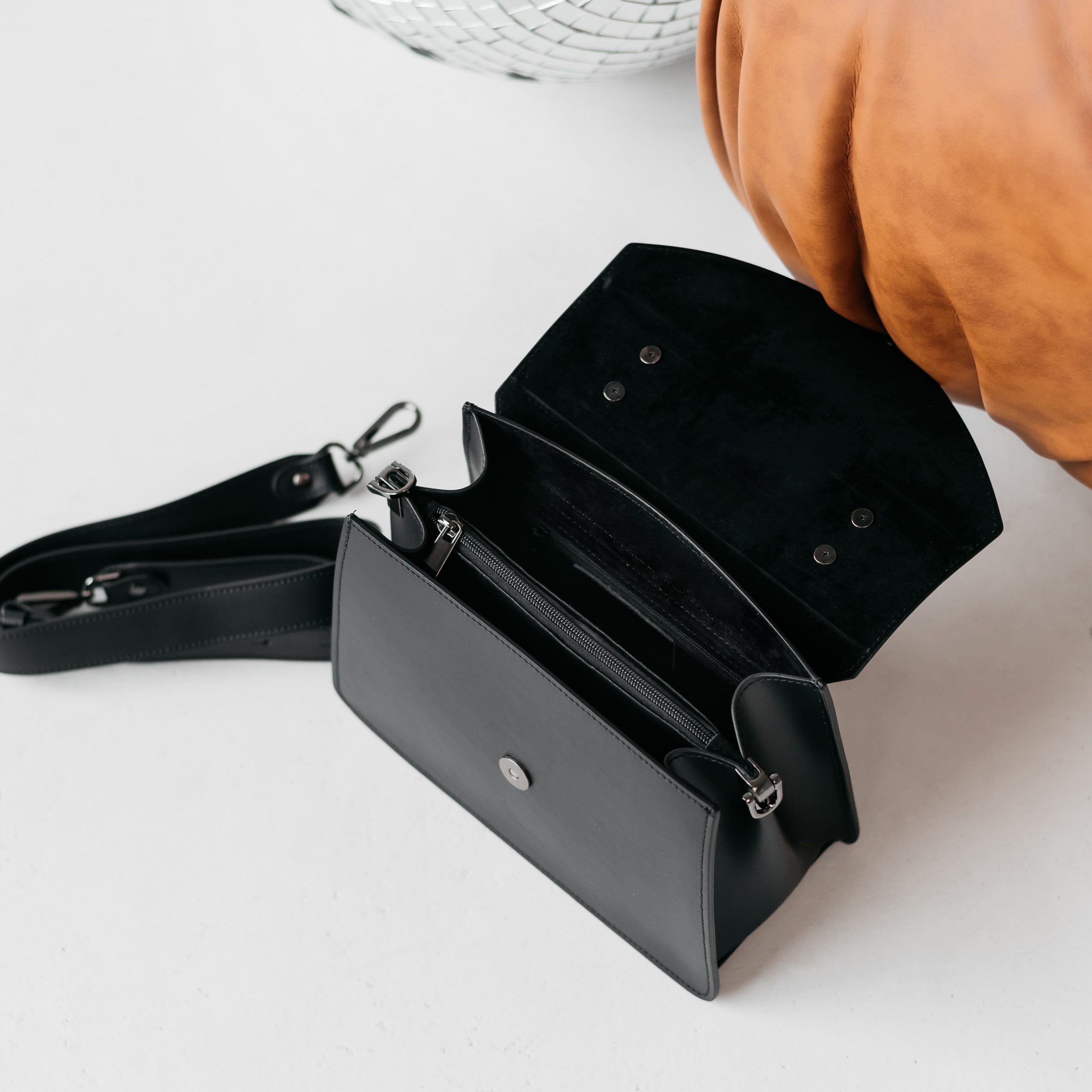 Сумка выполнена из натуральной кожи. Короткая ручка и длинный широкий ремень. Клапан застегивается на кнопку-магнит. Внутри посередине отделение на молнии и боковой карман на молнии. Ещё больше новинок в наших магазинах в Минске и Гродно.