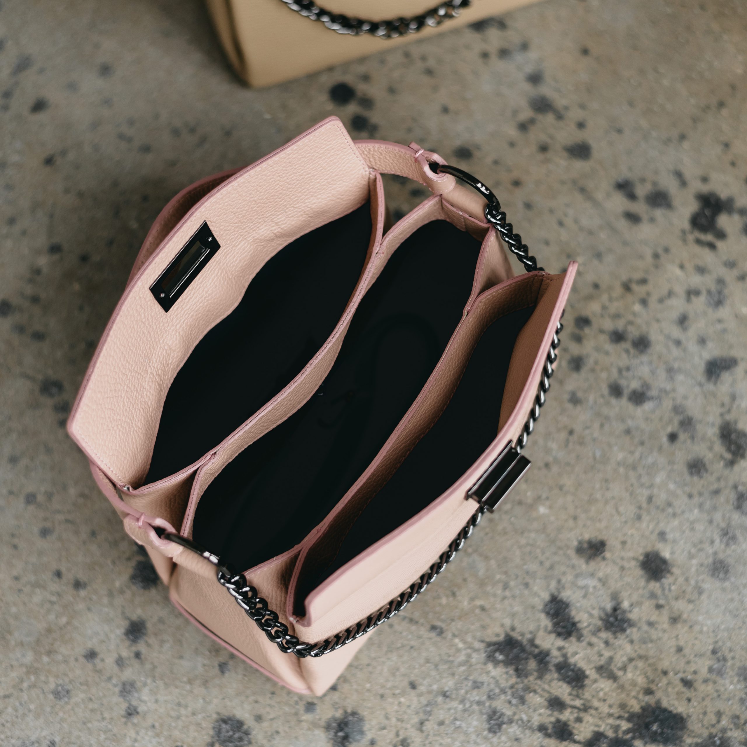 Сумка выполнена из натуральной кожи. Одна шикорая ручка и длинный ремешок, регулирующийся по длине. Сверху сумка застегивается на механическую застежку. Внутри одно общее отделение и два больших открытых боковых кармана. В отделении посередине боковой карман на молнии. Ещё больше сумок в наших магазинах в Минске и Гродно.