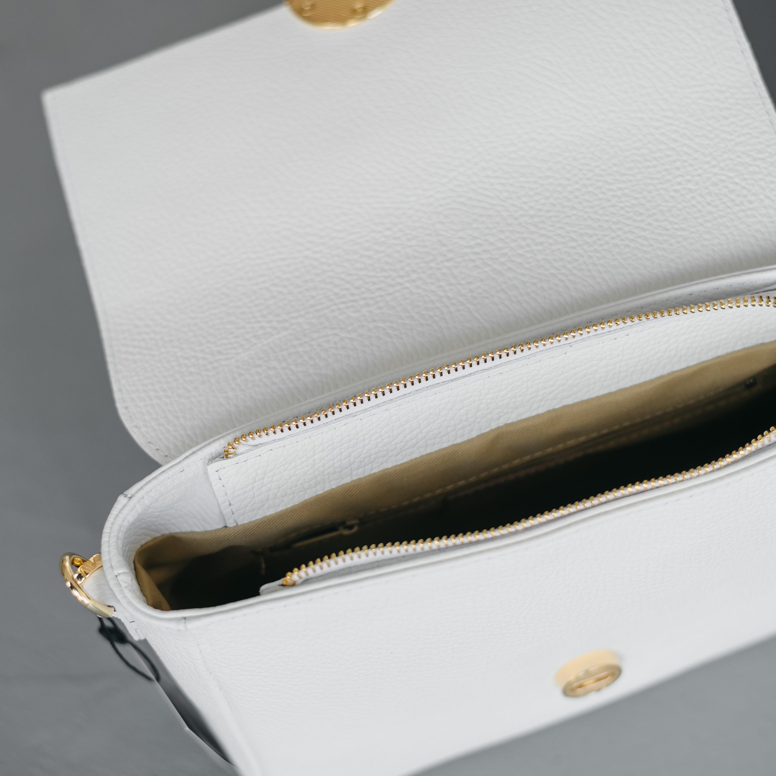 Сумка выполнена из натуральной кожи. Клапан застегивается на автоматическую застежку. Под клапаном сумка застегивается на молнию. Внутри одно общее отделение и боковой карман на молнии. Короткая ручка и длинный ремешок, регулирующийся по длине. Ещё больше сумок в наших магазинах в Минске и Гродно.