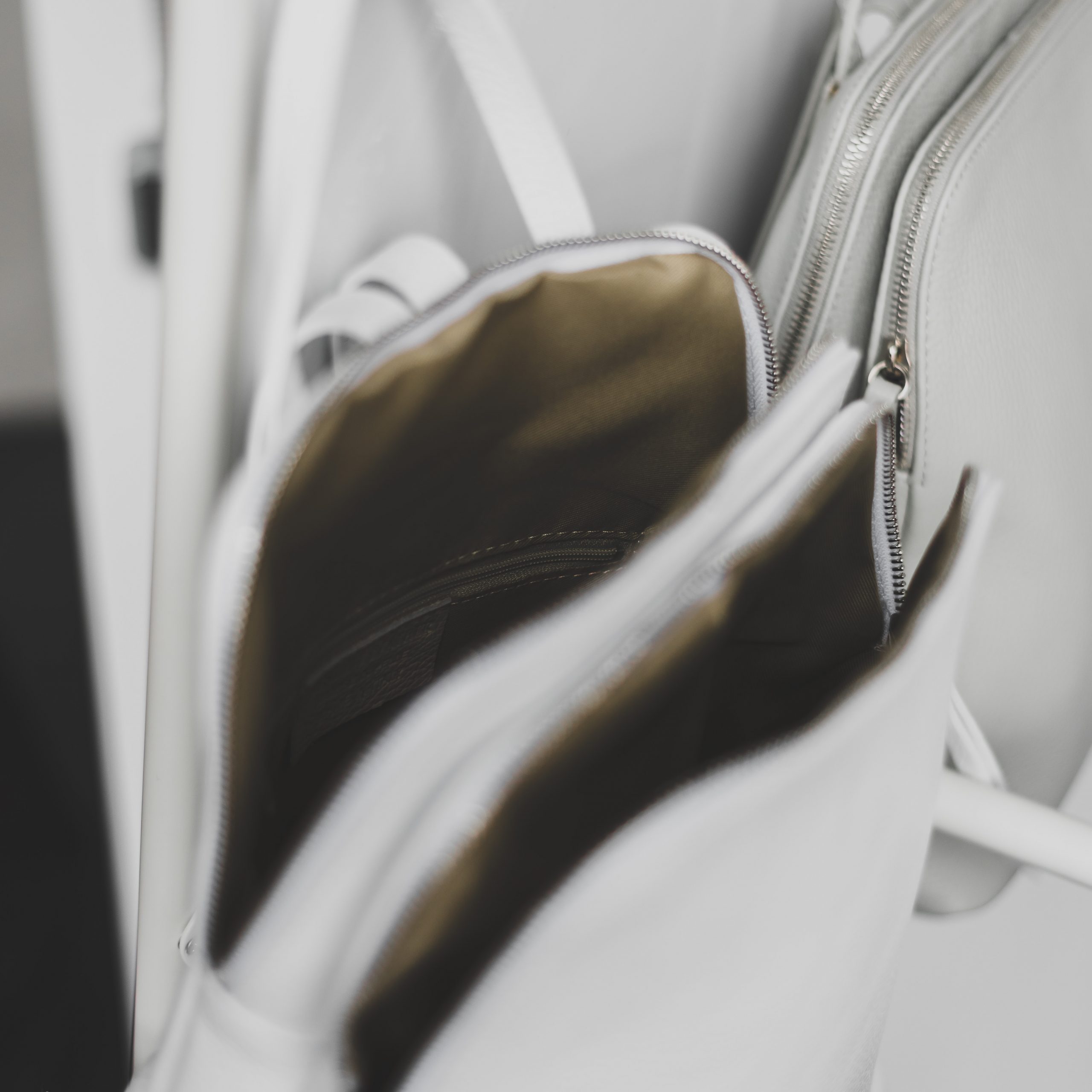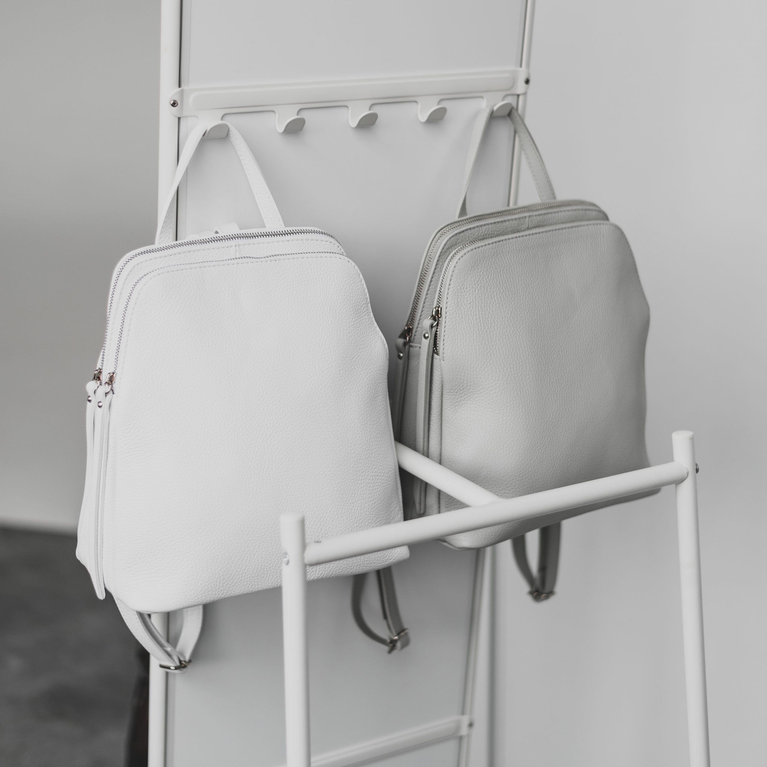 Рюкзак выполнен из натуральной кожи. Состоит из двух отделений, каждое из которых застегивается на молнию. Внутри одно есть боковые карманы, два открытых и один на молнии. Ещё больше новинок в наших магазинах в Минске.