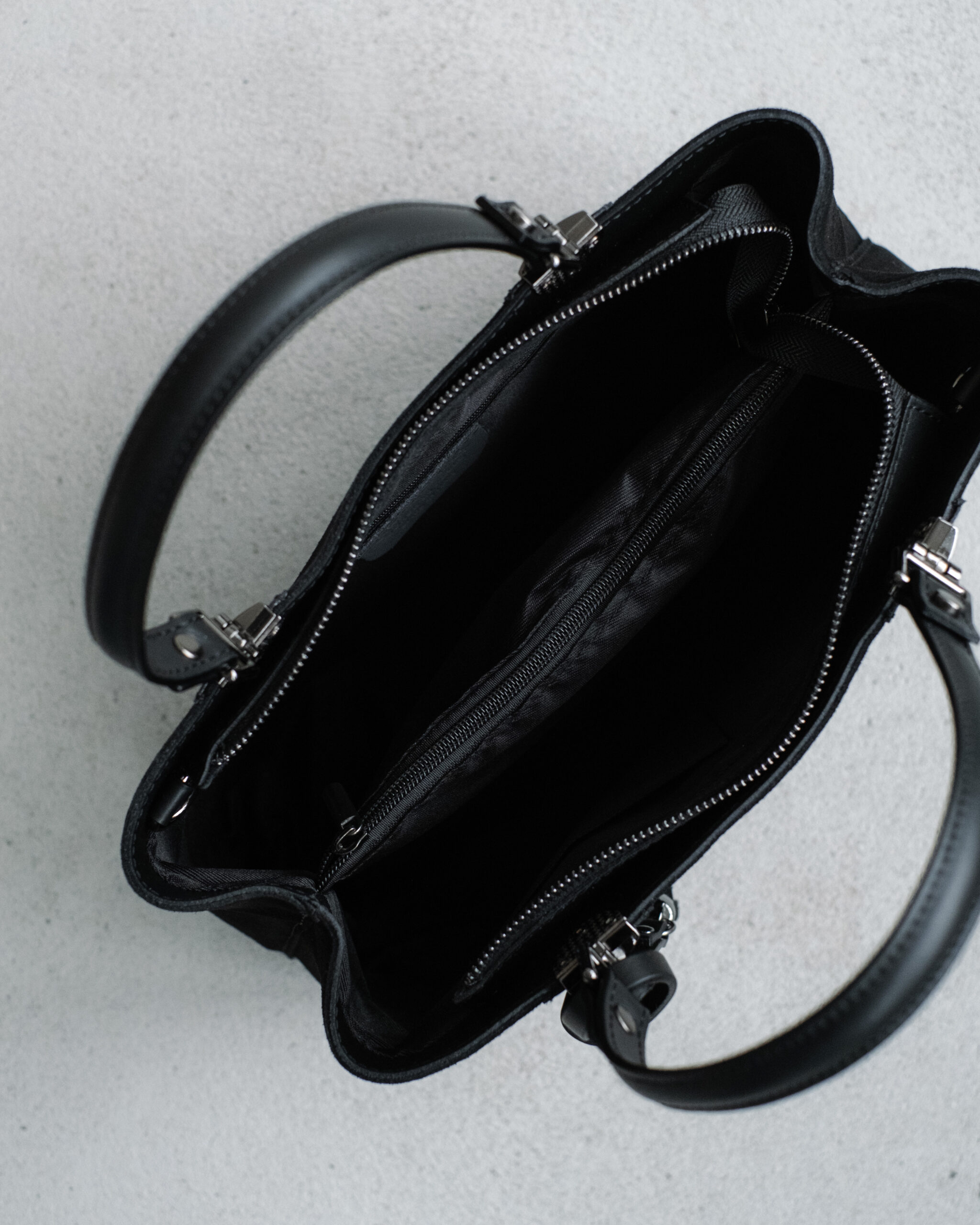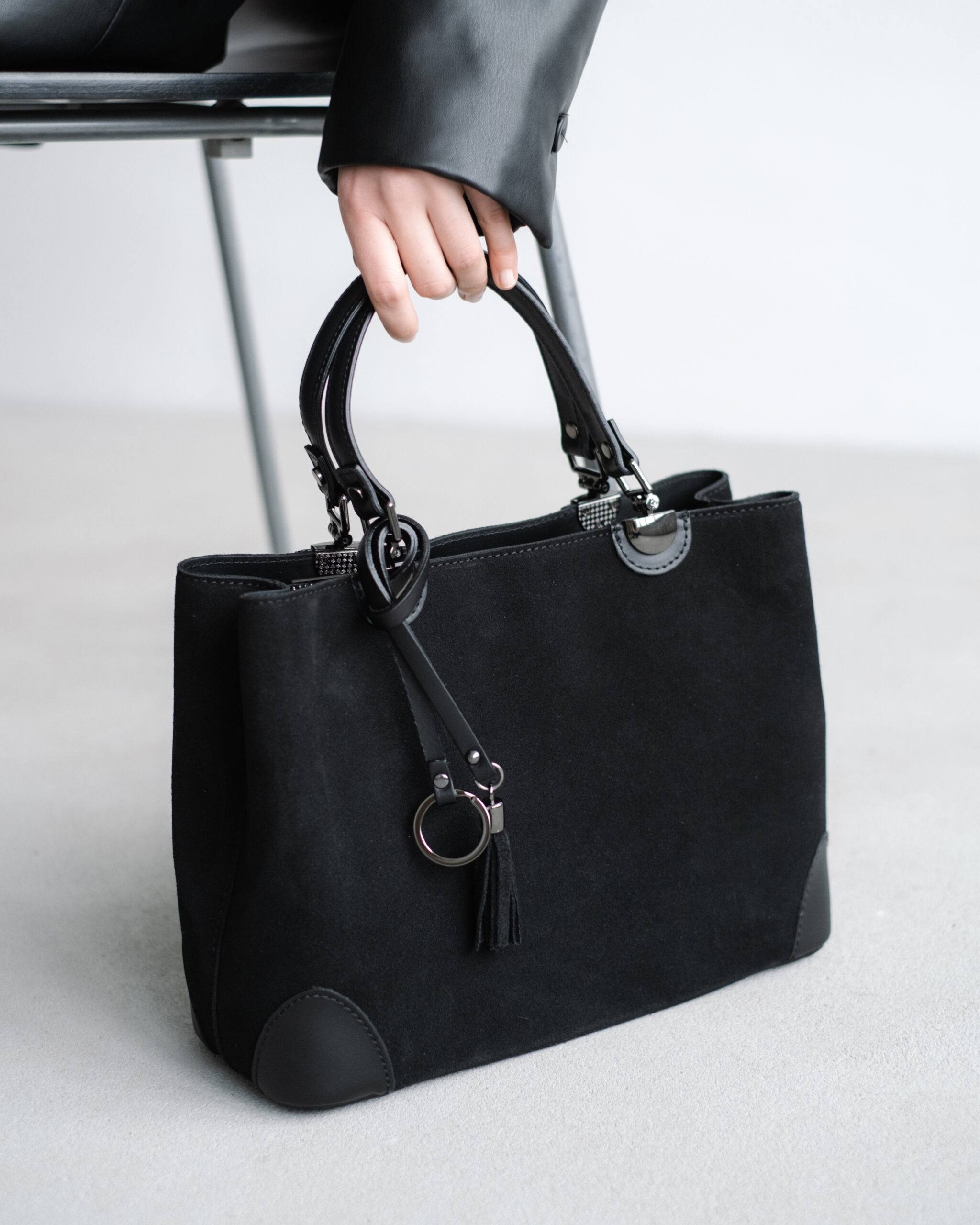 Сумка выполнена из натуральной замши. Дно, ручки и ремень из натуральной кожи. Сверху сумка застёгивается на молнию. Внутри посередине отделение на молнии и три боковых кармана, два открытых и один на молнии. Две короткие ручки и длинный ремешок, регулирующийся по длине. Ещё больше новинок в наших магазинах в Минске и в Гродно.
