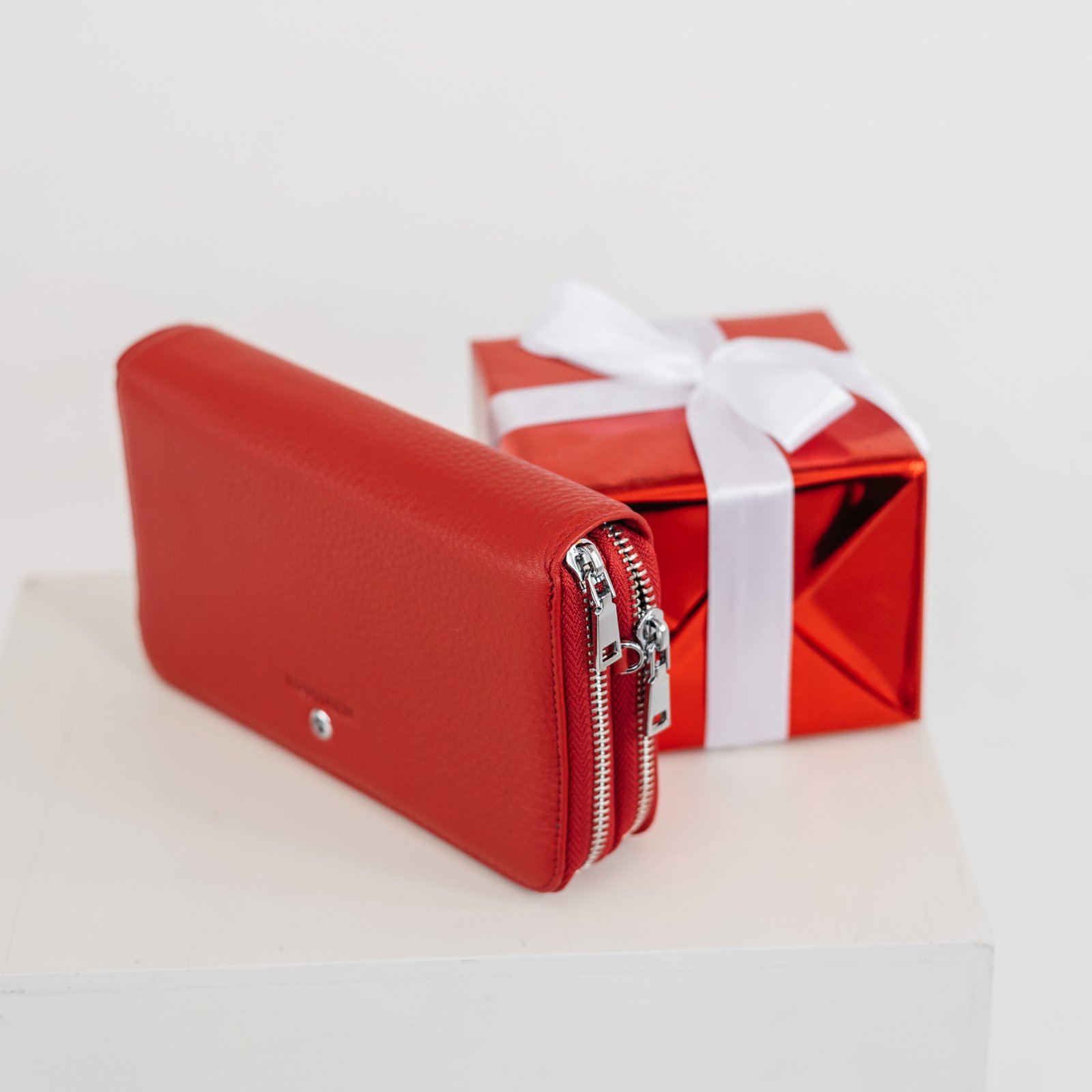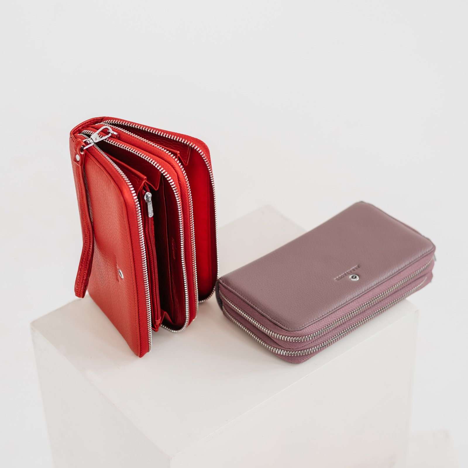 Кошелёк выполнен из натуральной кожи. Состоит из двух отделений, каждое из которых застегивается на молнию. Внутри отделения для купюр, платёжных и скидочных карт. Также есть карман для монет на молнии. Ещё больше новинок в наших магазинах в Минске.